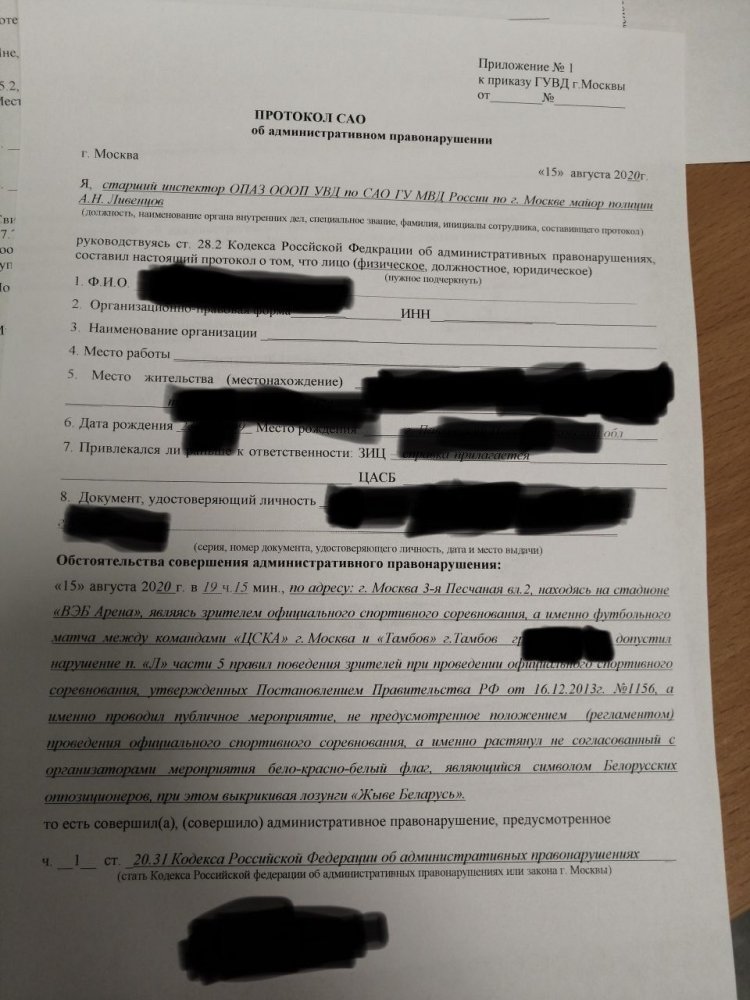 14:05 В протоколе одного из задержанных указано: «проводил публичное мероприятие, не предусмотренное положением (регламентом) проведения официального спортивного соревнования»