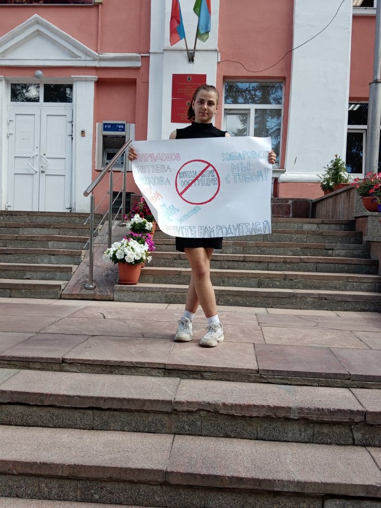 Также на плакате было написано «Хабаровск, мы с тобой!». По словам Валерии, она таким образом проявила солидарность с теми, кто, как и она, требует справедливости.