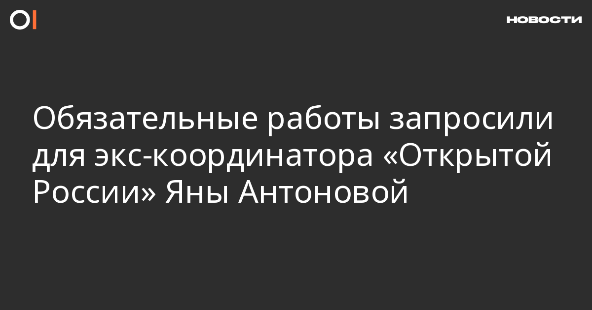 В Краснодаре прокурор запросила 240 часов обязательных работ для экс-координатора «Открытой России» Яны Антоновой по делу об участии в «нежелательной организации» (ст. 284.1 УК). Об этом сообщает «МБХ медиа» со ссылкой на координатора «Правозащиты Открытки» Алексея Прянишникова.