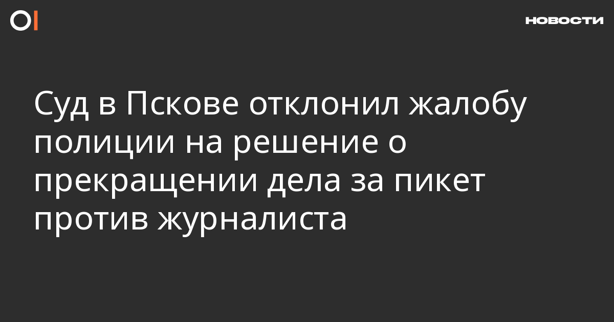 Псковский областной суд оставил без удовлетворения жалобу полицейских на решение о прекращении дела против главреда «Псковской губернии» Дениса Камалягина, участвовавшего в пикете в поддержку журналистки Светланы Прокопьевой. Об этом сообщает «Апология протеста».