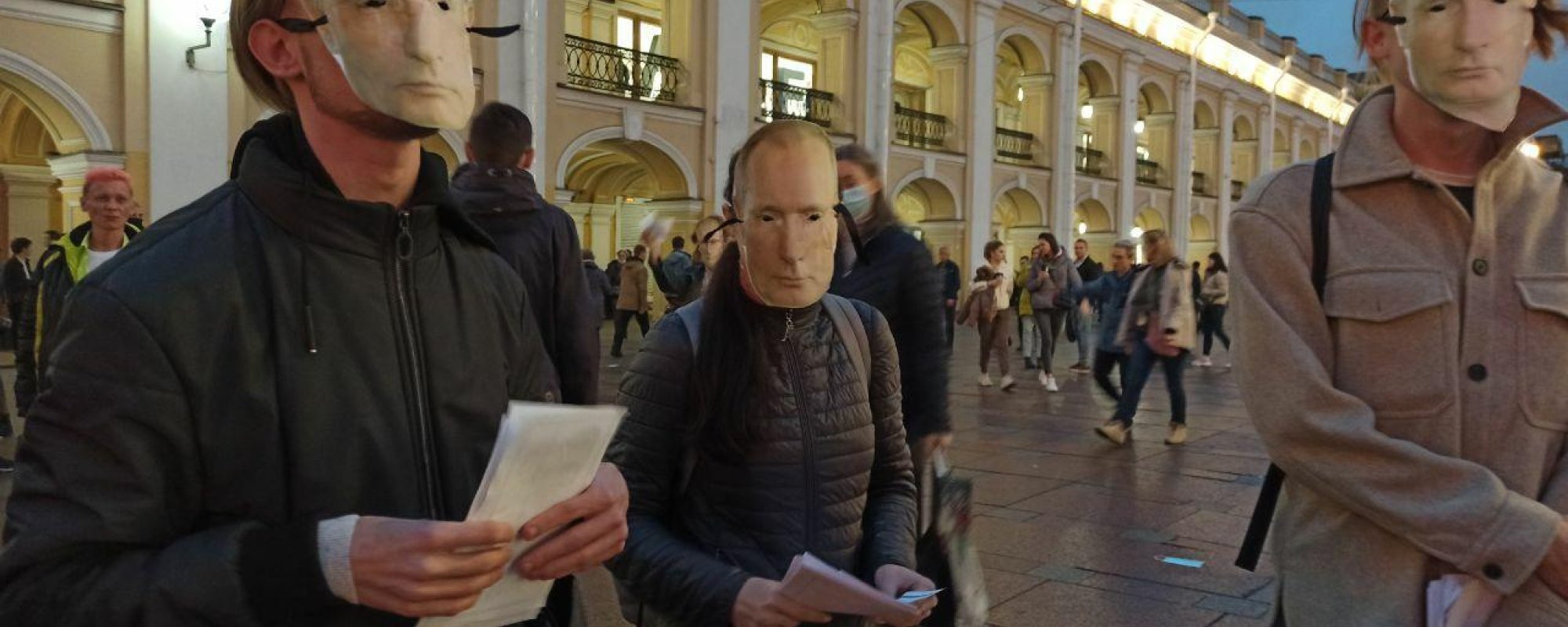 В Петербурге у Гостиного двора задержали участников акции, приуроченной к дню рождения Владимира Путина. Об этом ОВД-Инфо рассказал участник акции Владимир Василенко.