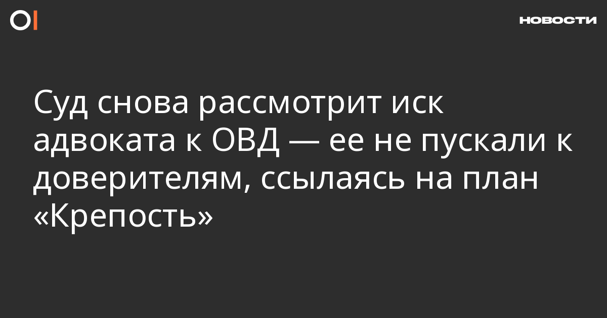 Второй кассационный суд отменил решение об отказе в удовлетворении иска адвоката Марии Эйсмонт к ОВД «Аэропорт». Сотрудники отдела не пускали Эйсмонт к задержанным на акции против сфабрикованных дел под предлогом введения плана «Крепость». Об этом ОВД-Инфо сообщил член комиссии совета Адвокатской палаты Москвы по защите прав адвокатов Евгений Бобков.