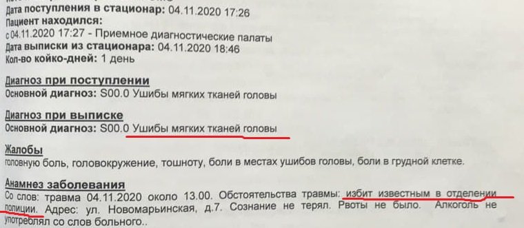 В день задержания Михайлова отвозили в городскую больницу имени В. П. Демихова (бывш. больница № 68), где ему диагностировали ушиб мягких тканей головы. В распоряжении ОВД-Инфо есть выписка из больницы, согласно которой Михайлов «избит известным в отделении полиции».