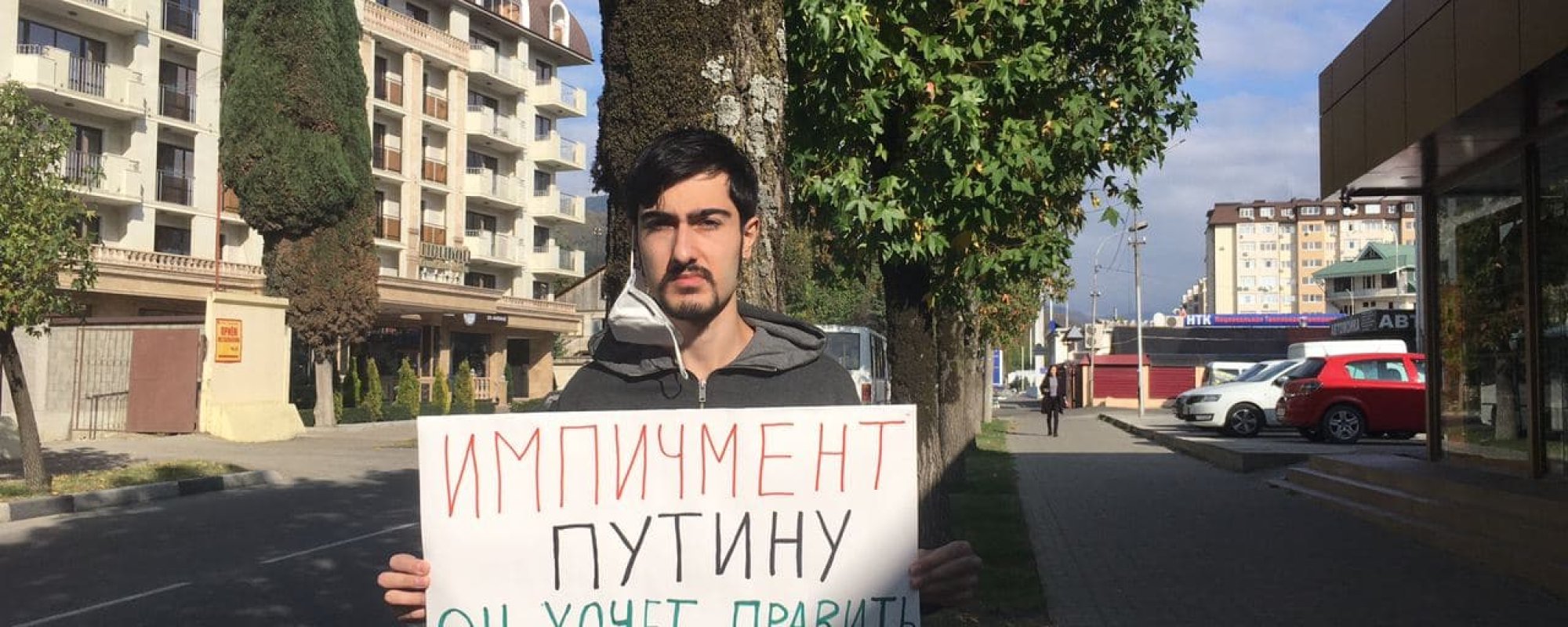 В Сочи задержали активиста «Яблока» Рональда Айрапетяна из-за одиночного пикета с требованием импичмента Путина. Об этом сам Айрапетян сообщил в правовой бот ОВД-Инфо.