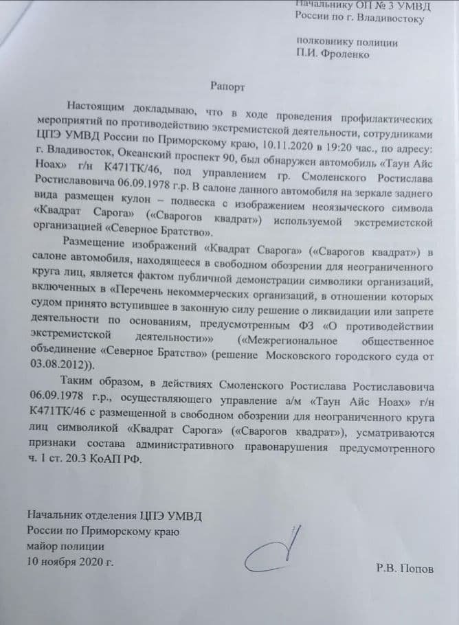 21:18 Хабаровский штаб Навального публикует рапорт полицейских, ставший поводом для задержания Смоленского.
