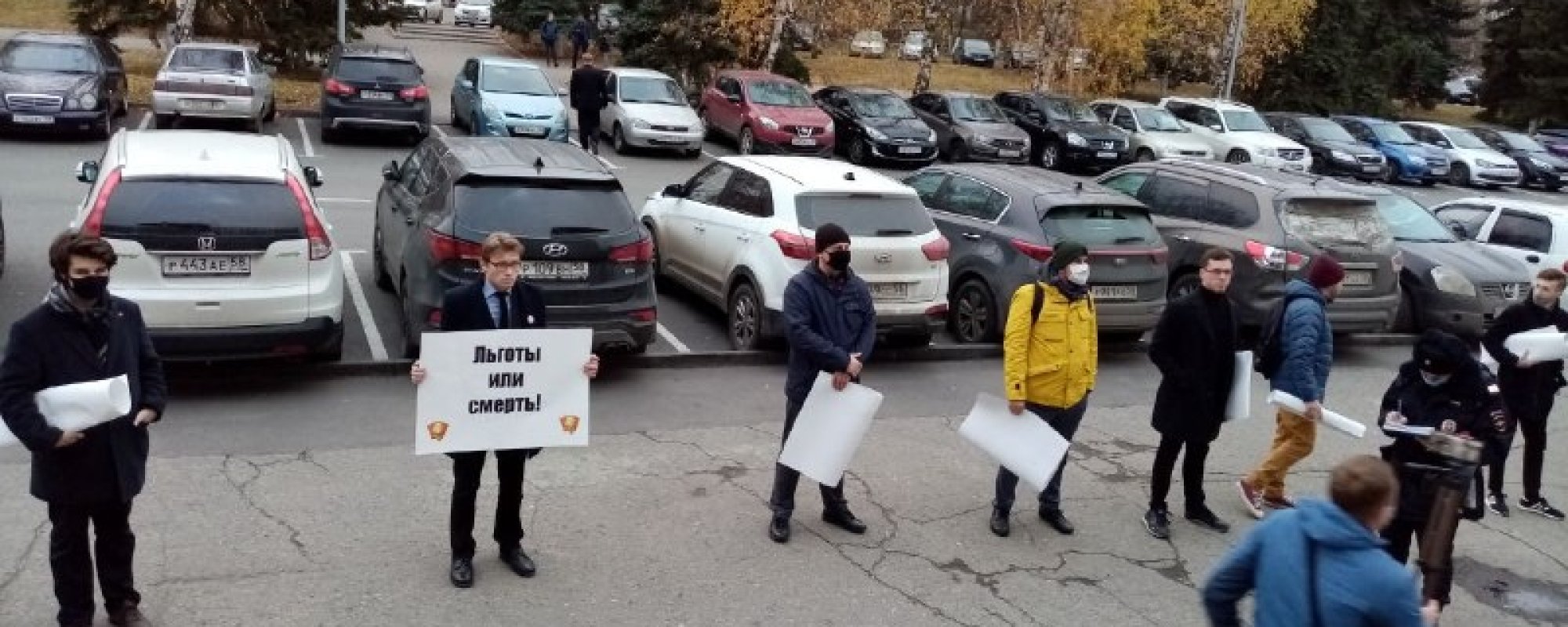 Акцию провели активисты «Ленинского комсомола» — молодежного крыла КПРФ. Участники пикетной очереди потребовали отменить повышение тарифа на проезд в общественном транспорте и введения льгот для школьников и студентов.