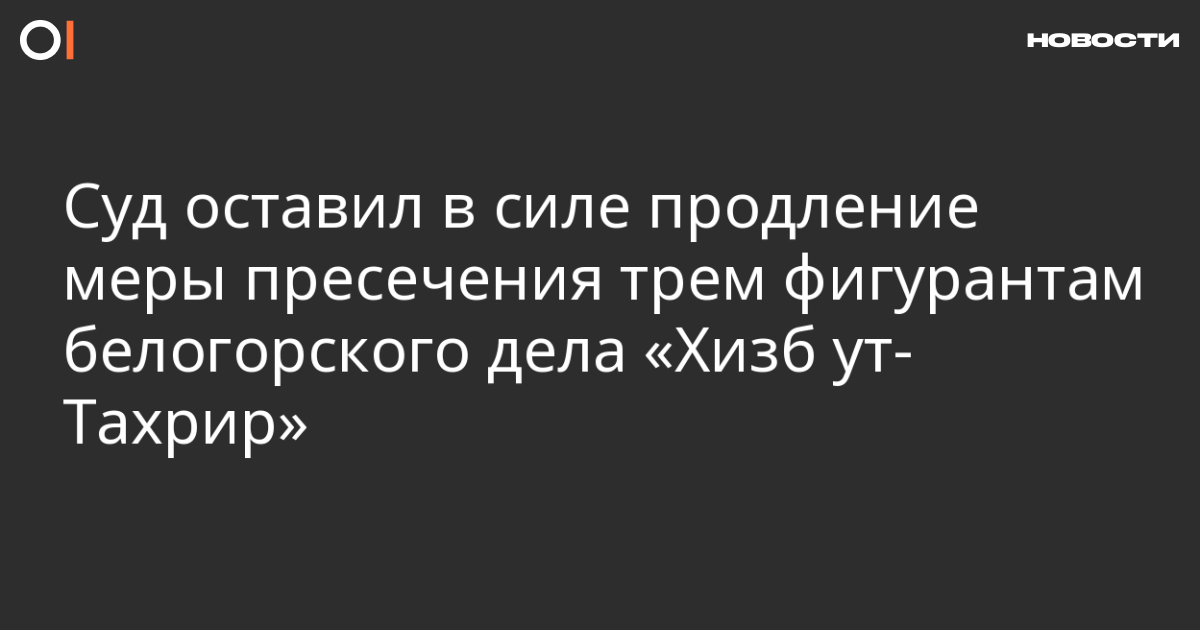 Апелляционный военный суд в подмосковном городе Власиха 13 ноября оставил в СИЗО трех фигурантов белогорского дела «Хизб ут-Тахрир» Ризу Омерова, Энвера Омерова и Айдера Джеппарова, сообщает «Крымская солидарность».