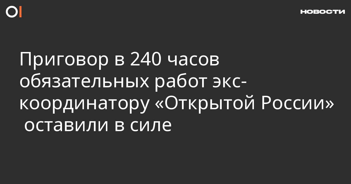 Краснодарский краевой суд оставил в силе приговор в 240 часов обязательных работ бывшему координатору «Открытой России» в регионе Яне Антоновой. Об этом сообщает «МБХ медиа» со ссылкой на координатора «Правозащиты Открытки» Алексея Прянишникова.