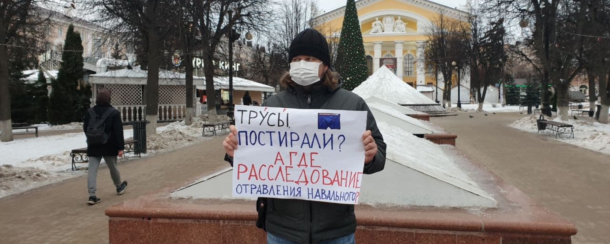Ирина Редникова рассказала, что муж стоял в пикете с плакатом «Трусы постирали? А где расследование отравления Навального?» — сначала у здания местного управления ФСБ, затем у кинотеатра «Центральный». Редникова заметила, что его сфотографировали неизвестные люди в штатском. Вскоре к Сергею подошли полицейские и задержали.