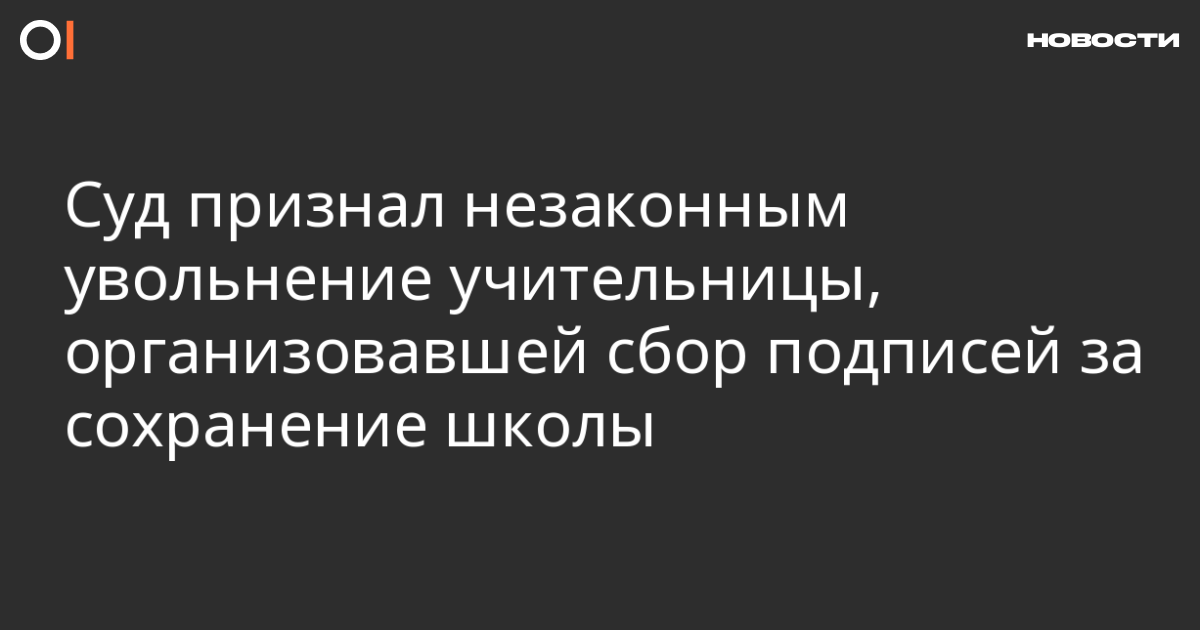 28 декабря Усть-Куломский районный суд признал незаконным увольнение преподавательницы Юлии Пашниной. Педагог связывает увольнение со сбором подписей против закрытия школы в деревне Скородум. Об этом сообщает «7×7».