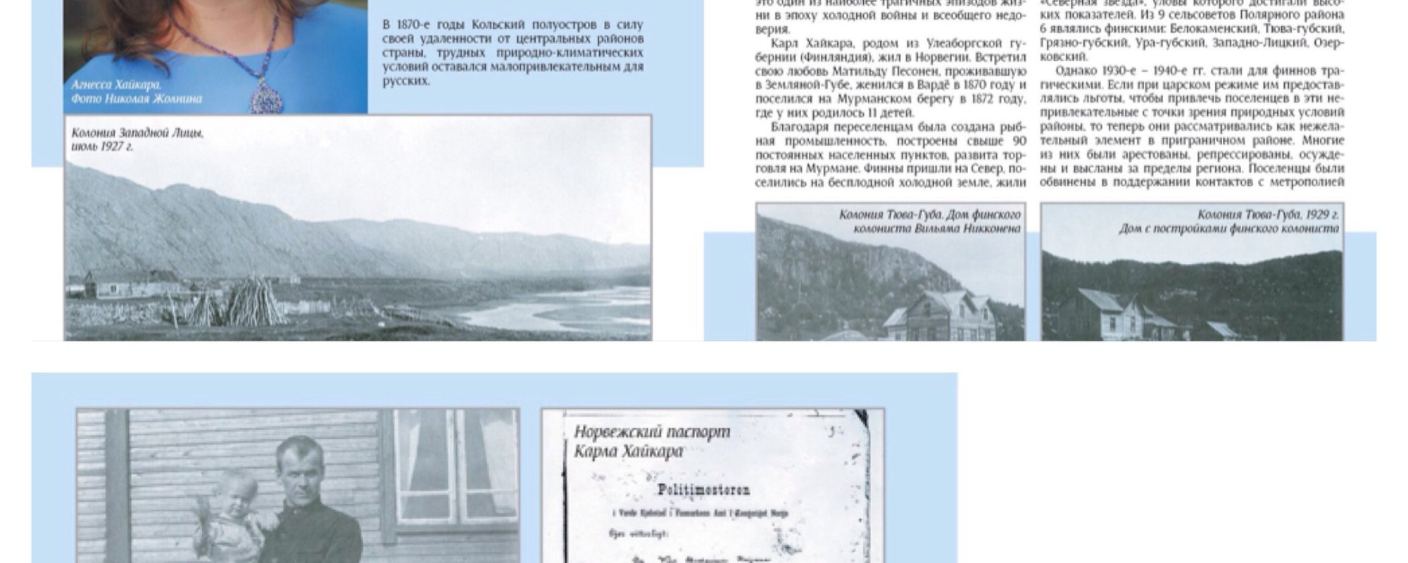 «Неизвестная северная история» — это исследование о «политических репрессиях против кольских финнов и норвежцев на мурманском берегу» в советские годы. В книге писательница собрала истории 210 пострадавших от репрессий, 10 из них — родственники Агнессы Хайкара.