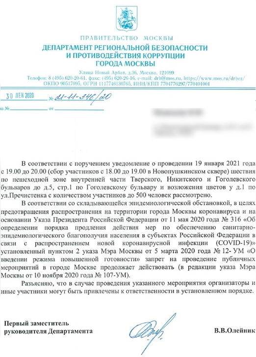 Ежегодное шествие, проводившееся последние 12 лет, мэрия отказалась согласовать под предлогом коронавирусных ограничений. В Департаменте региональной безопасности, куда подавалось уведомление, организаторов акции предупредили об ответственности в случае, если шествие все же состоится.