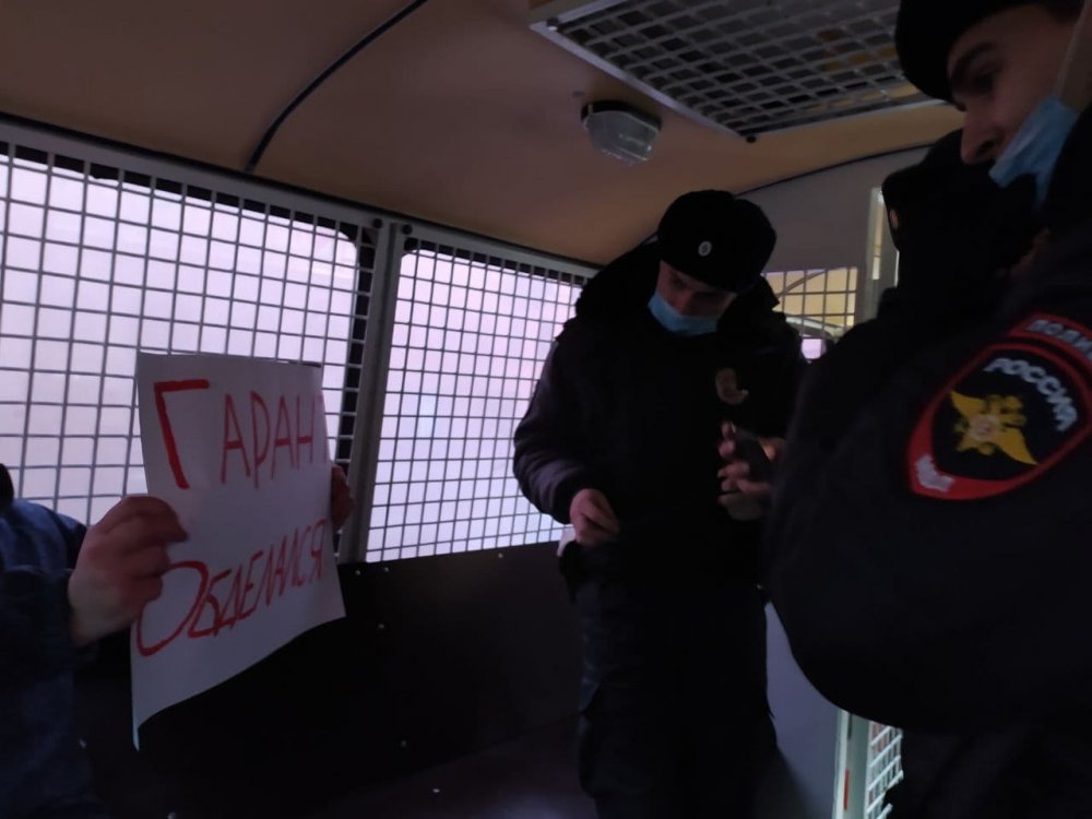 17:50 Также в Петербурге у Гостиного двора задержали главу муниципального образования «Гавань» Нэлли Вавилину, сообщил правозащитник Владимир Василенко. Она стояла с плакатом с фотографией Юлии и Алексея Навальных и надписью «Свободу!».