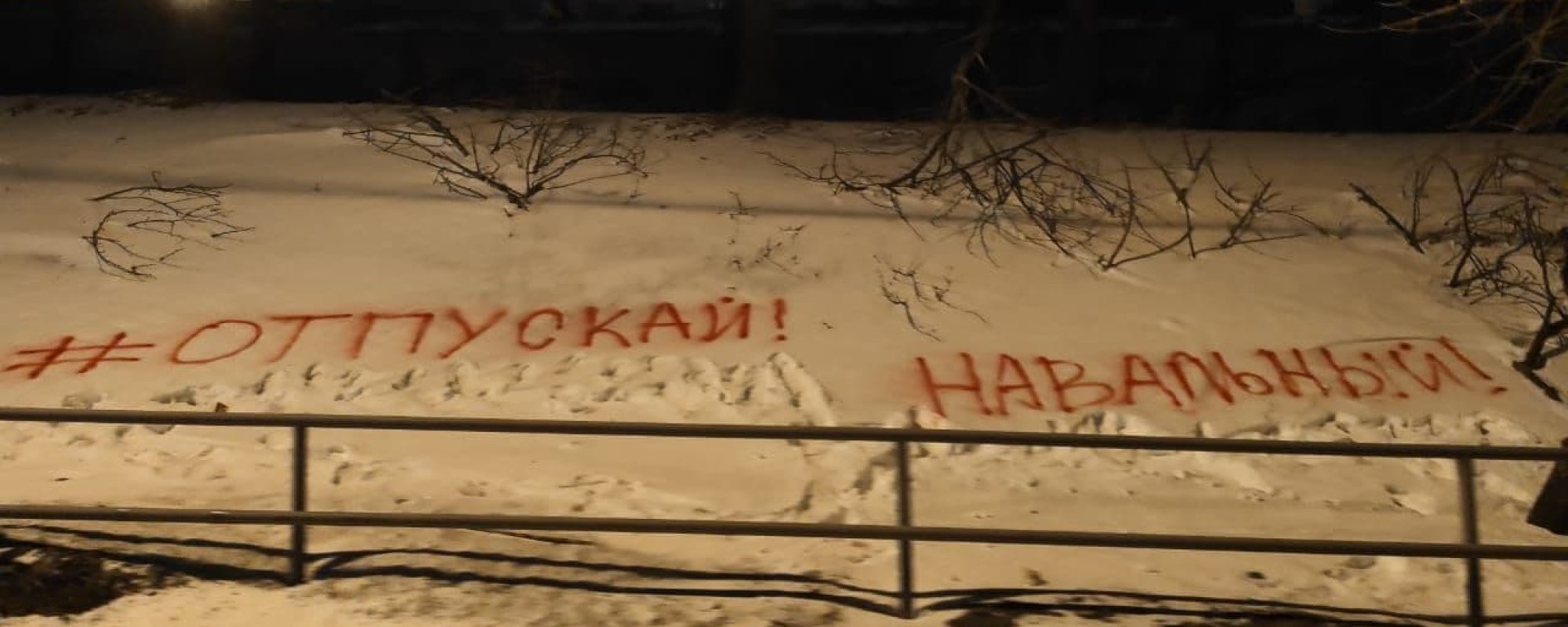 Во Владивостоке на улице 40 лет ВЛКСМ сотрудники ДПС задержали активистов Александра Налимова, Эльдара Фетисова и Ивана Козырева за надпись на снегу «#Отпускай! Навальный!», сообщает сотрудничающий с ОВД-Инфо юрист Дмитрий Зубарев.