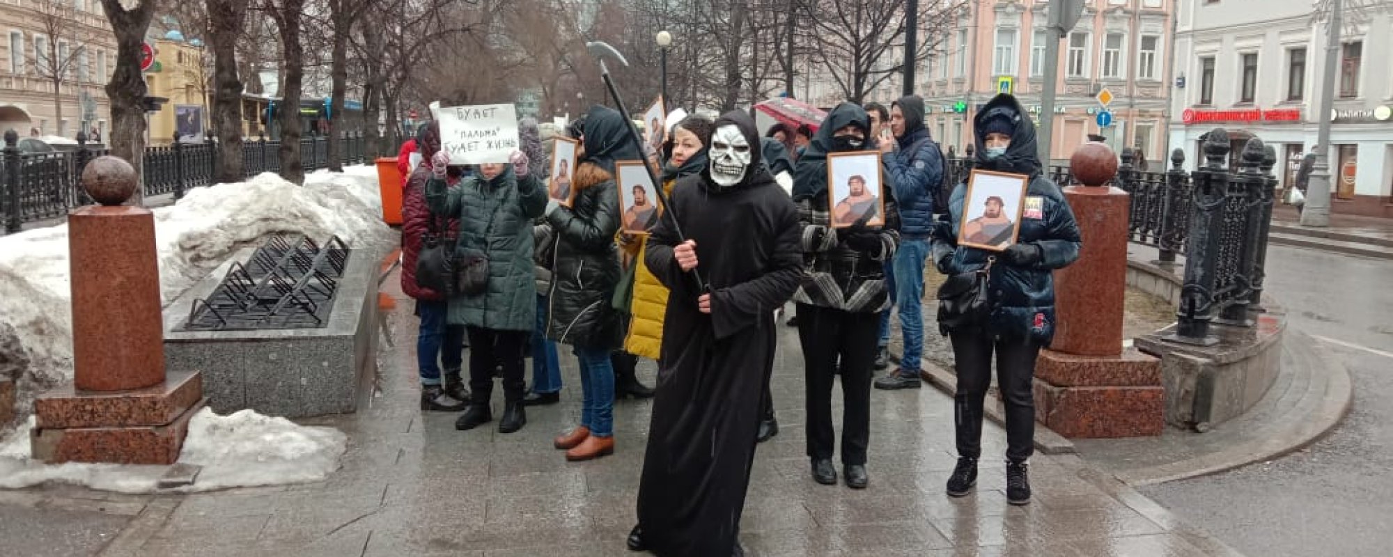 Четверых человек на акции задержали, в том числе Силина и Новикова. Отмечается, что Новиков участвовал в мероприятии в костюме смерти.