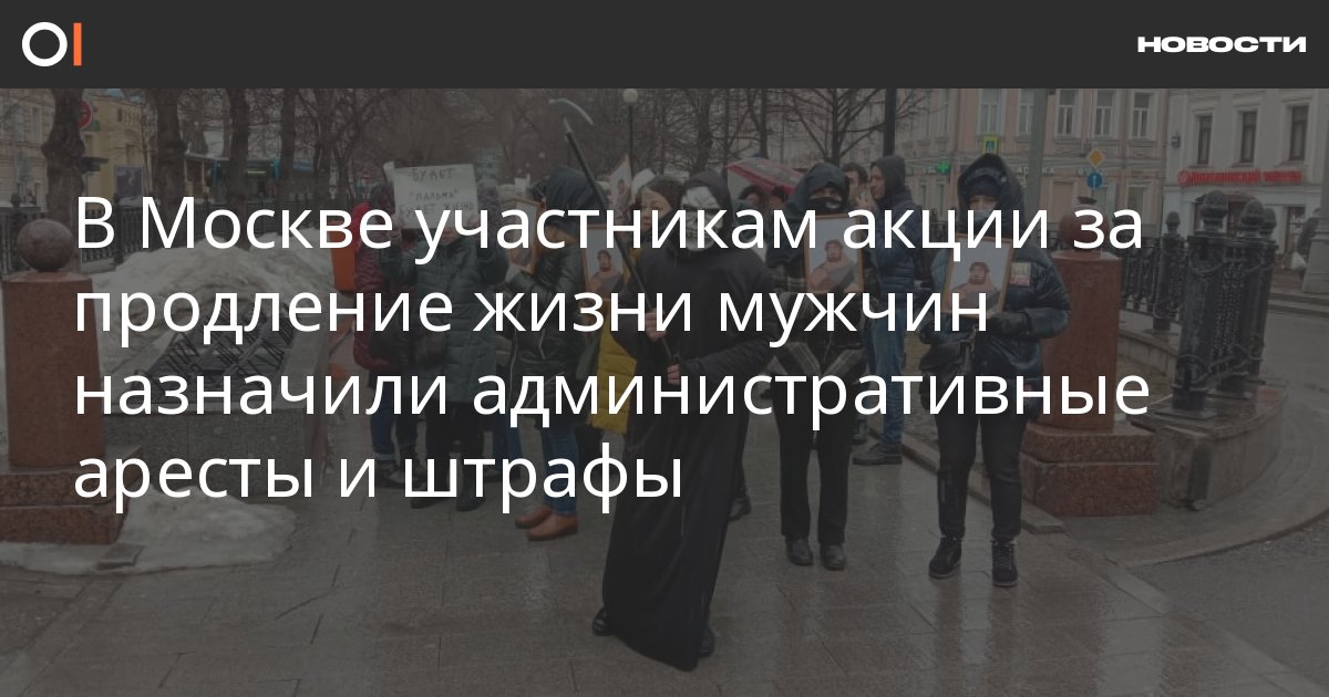 Активисты, которых задержали 4 марта во время акции за продление жизни мужчин, получили административные аресты и штрафы. Об этом ОВД-Инфо сообщил координатор организации «Здоровая еда» Даниил Усмендеев.