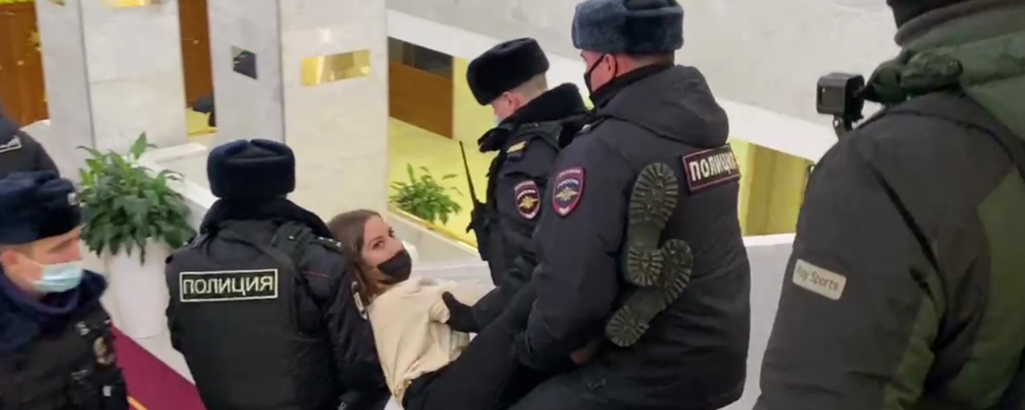 Также Мария Красова сообщила ОВД-Инфо, что в отделе полиции «Гольяново» задержанных опрашивает сотрудник Центра «Э».