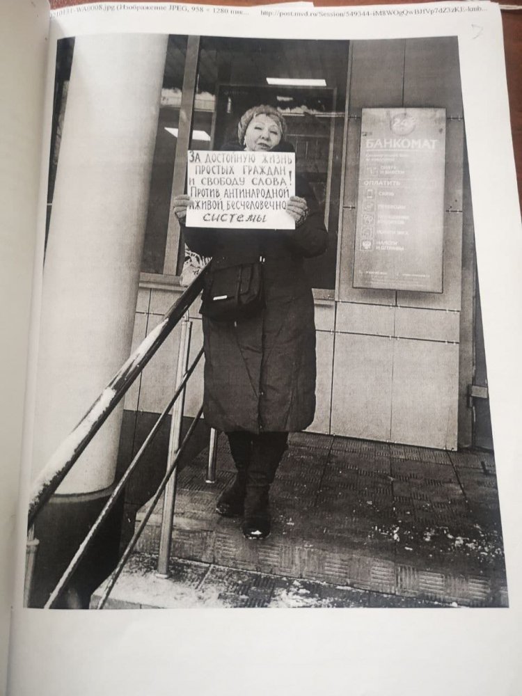 Пенсионерку доставили в ОВД по городскому округу Жуковский, где на нее составили протокол о нарушении порядка проведения публичных акций (ч. 1 ст. 20.2 КоАП). Суд должен был состояться в Жуковском, но место проведения заседания перенесли по ходатайству стороны защиты.
