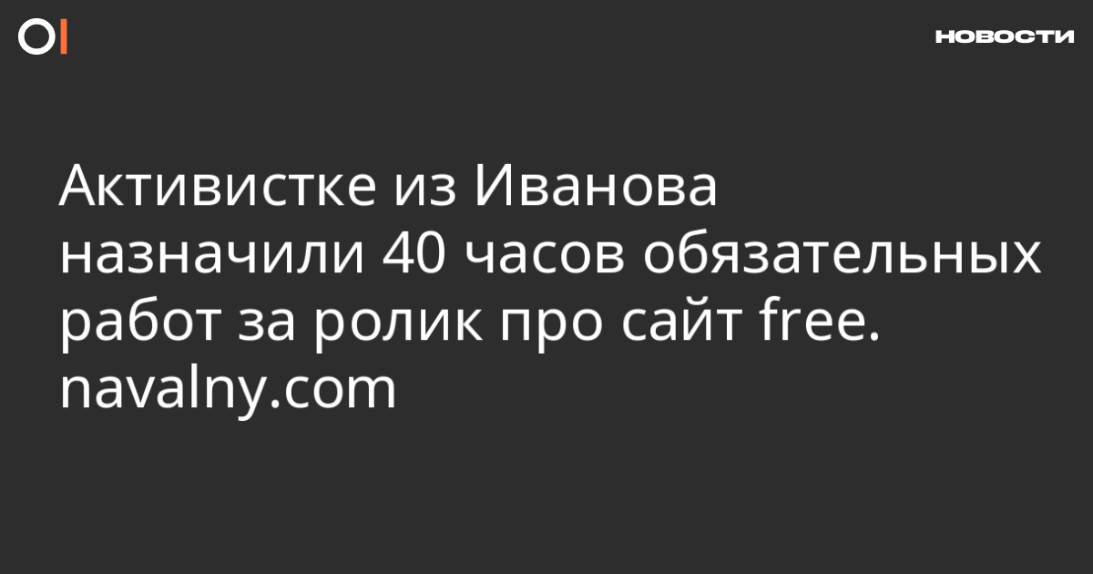 Фрунзенский районный суд Иванова назначил 40 часов обязательных работ гражданской активистке Ольге Назаренко из-за ролика, в котором она призывала земляков регистрироваться на сайте «Свободу Навальному!» и выходить на улицы в его поддержку. Об этом она сама сообщила ОВД-Инфо.
