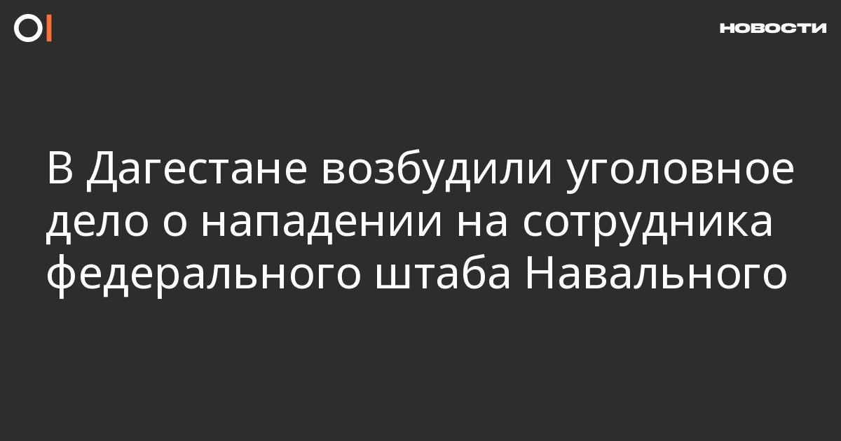 Полиция в Дагестане возбудила уголовное дело о нападении на сотрудника федерального штаба Навального Руслана Аблякимова. Об этом сообщает «МБХ медиа».