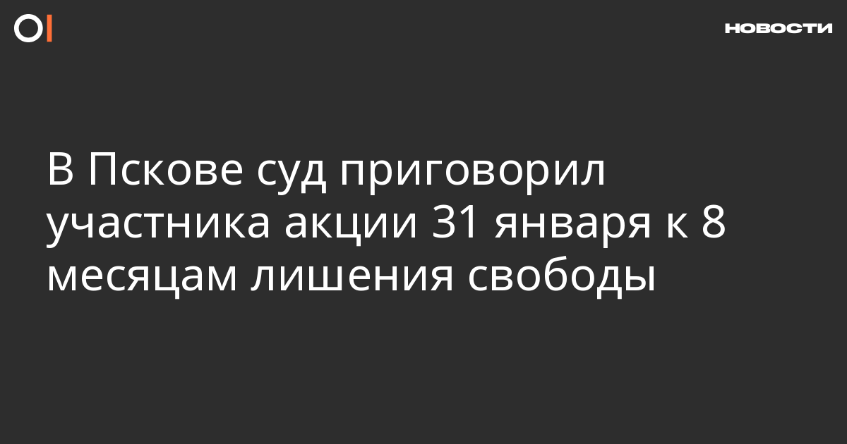 29 апреля Псковский городской суд огласил приговор участнику акции 31 января Олега Иванова: его признали виновным по статьям о: призывах к массовым беспорядкам (ч. 3 ст. 212 УК), призывам к экстремизму (ч. 2 ст. 280 УК), насилии в отношении представителя власти (ч. 1 ст. 318 УК) и хранении оружия (ч. 1 ст. 222 УК). Об этом сообщает пресс-служба суда.