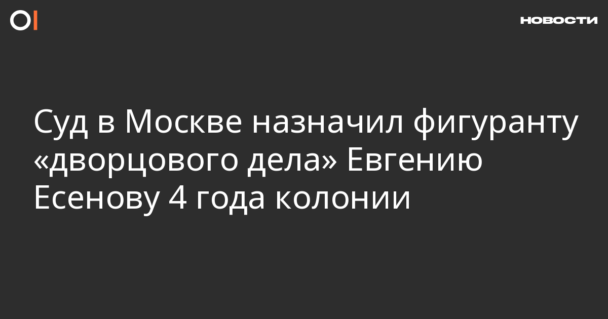Тверской районный суд Москвы назначил фигуранту «дворцового дела» Евгению Есенову 4 года колонии общего режима, сообщают «Арестанты 212».