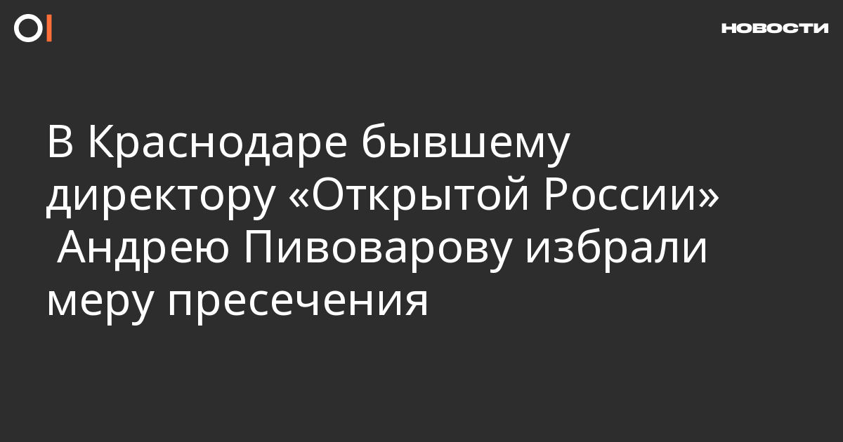 Первомайский районный суд Краснодара избрал меру пресечения в виде ареста на 2 месяца Андрею Пивоварову, бывшему исполнительному директору ликвидированной организации «Открытая Россия». Об этом сообщает «Медиазона».