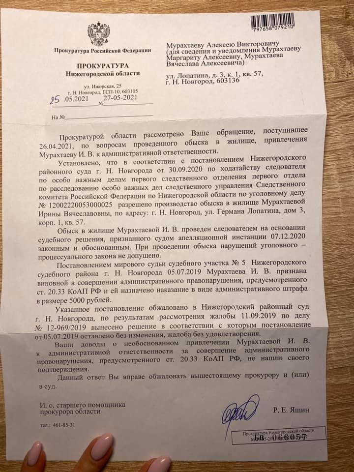 Прокуратура подчеркнула, что решение суда, на основании которого прошел обыск, в апелляции признали законным. При этом сотрудники надзорного ведомства считают, что в ходе обыска «нарушений уголовно-процессуального закона не допущено».