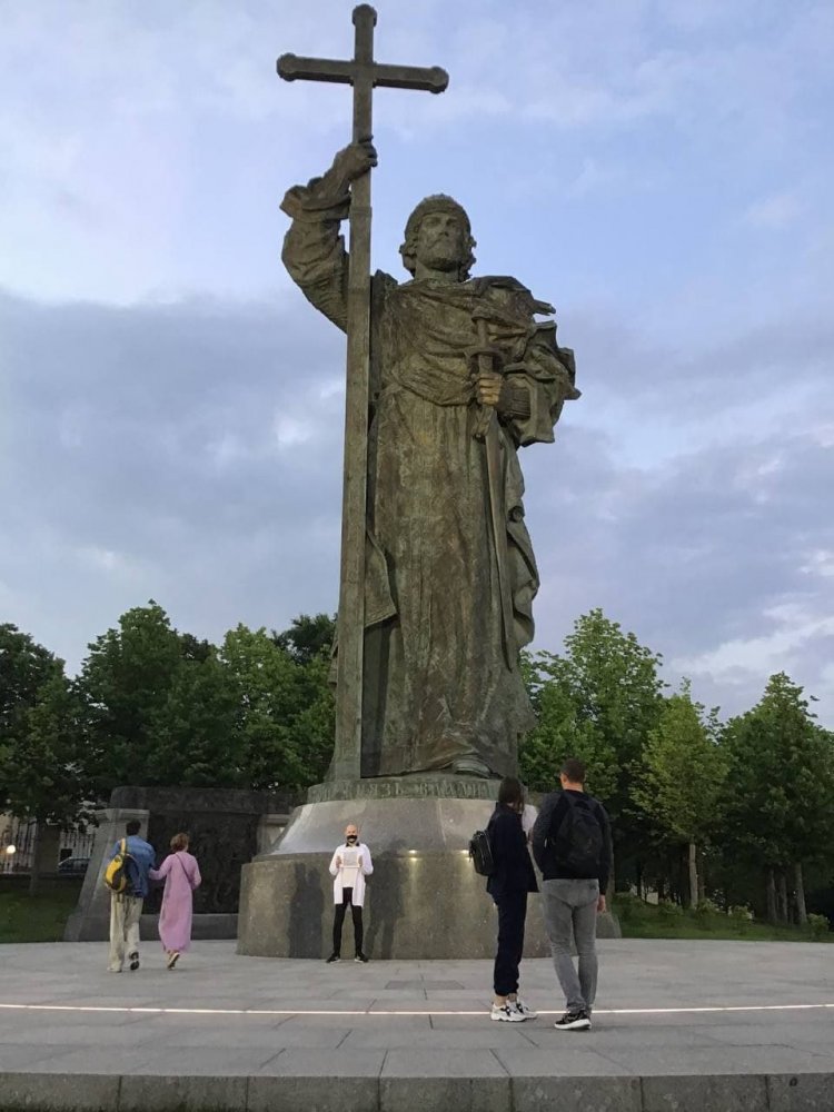 В Москве у памятника князю Владимиру Великому полиция задержали пикетчика Александра Римова, на плакате которого был QR-код. Об этом ОВД-Инфо сообщила свидетельница задержания.