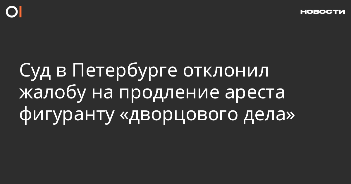 1 июля Санкт-Петербургский городской суд отклонил апелляционную жалобу на продление срока содержания под стражей фигуранту «дворцового дела» Эльдару Гарипову. Об этом сообщает адвокат Игорь Скачко, сотрудничающий с ОВД-Инфо.
