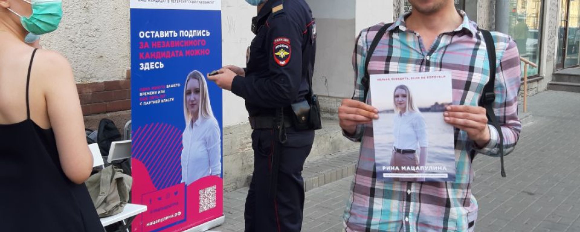 «Стояли сборщики подписей на роллапе около [улицы] Бакунина, и их задержали. Приехала полиция, начали спрашивать про согласование, и в конце концов увезли в 76-й отдел», — рассказала Мацапулина изданию.