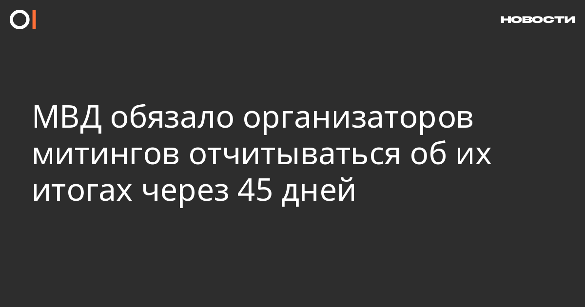 Организаторов публичных акций в России обязали отчитываться об итогах мероприятия спустя 45 дней после его проведения. Об этом говорится в приказе главы МВД Владимира Колокольцева, который опубликовали 30 июля.