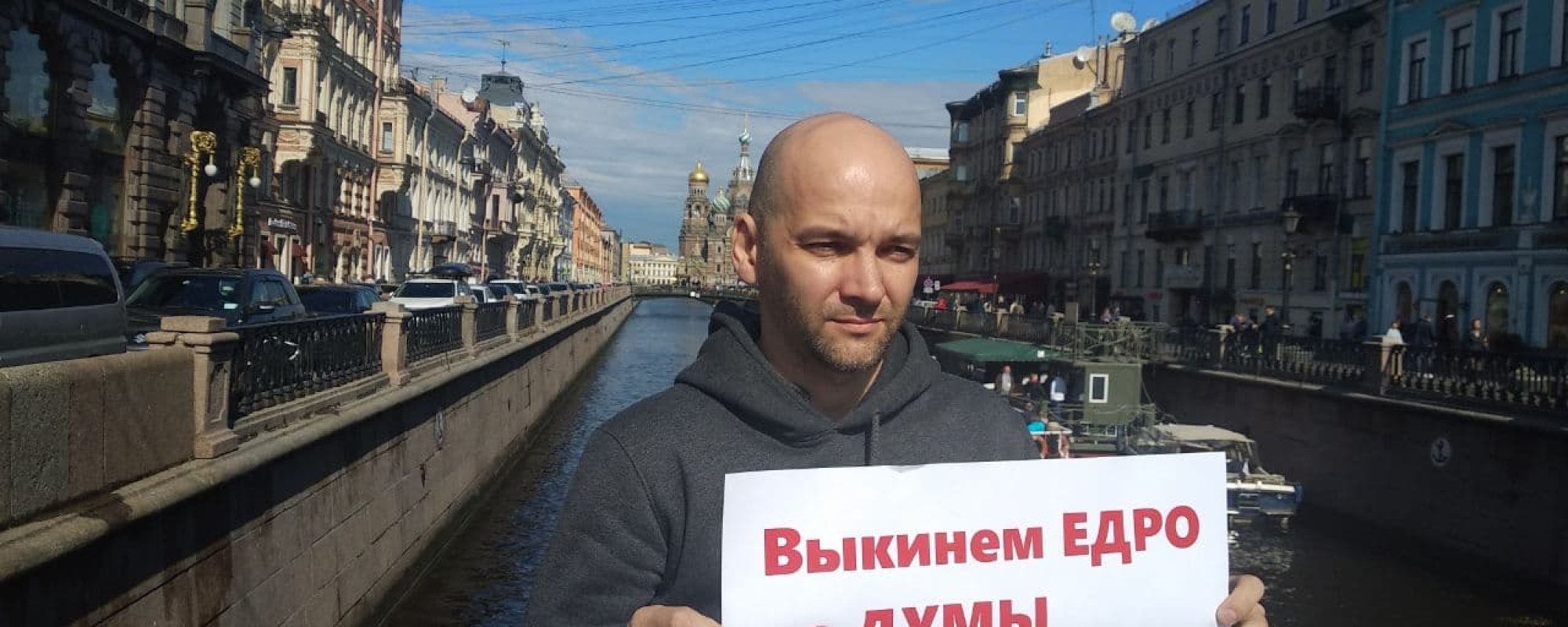 Пикетчик держал плакат: «Выкинем Едро из Думы. Умное голосование». Полицейские прервали пикет через 20 минут после его начала. Они сказали, что «пикеты запрещены».