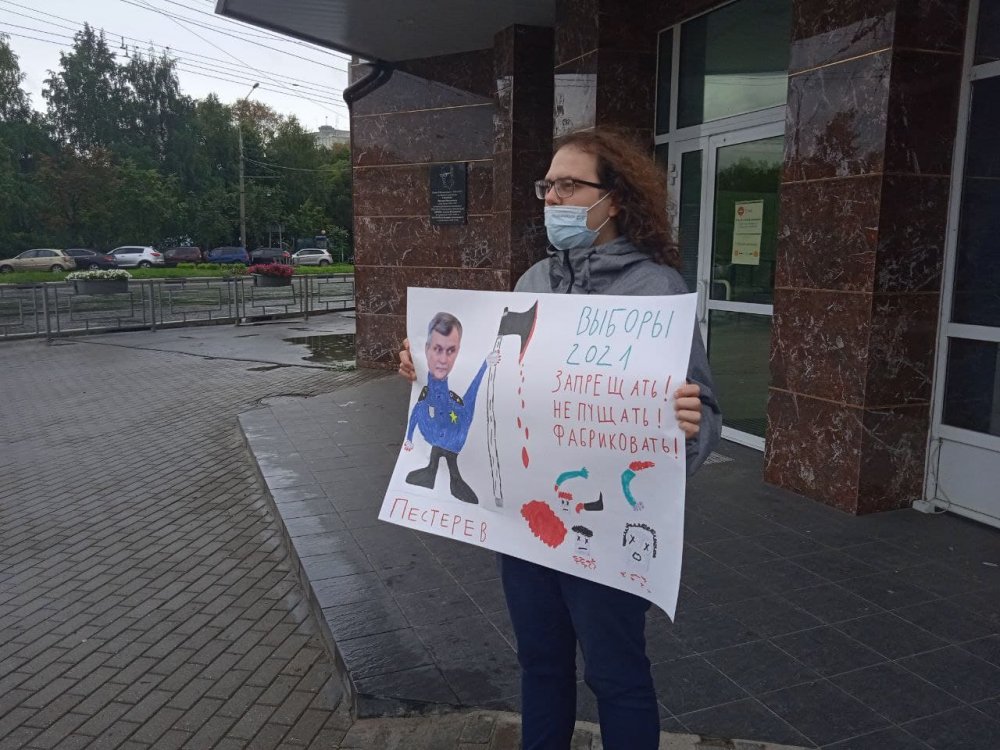 15:50 На Соколова составили протокол о нарушении организатором правил акции (ч. 1 ст. 20.2 КоАП). У него изымают плакат. Соколов − кандидат в депутаты Законодательного собрания Вологодской области, поэтому в суд его направят через прокуратуру.