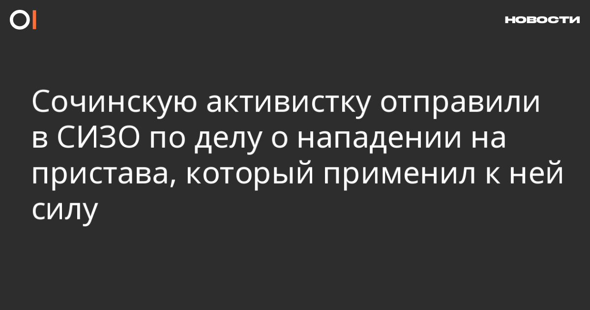 В Сочи местную активистку Галину Бурову отправили в СИЗО на два месяца по делу о нападении на судебного пристава (ст. 318 УК), которое возбудили из-за инцидента двухлетней давности. Об этом пишет «Кавказский узел» со ссылкой на пенсионерку Елену Шульгу.