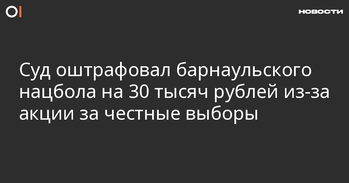 Железнодорожный районный суд Барнаула оштрафовал на 30 тысяч рублей активиста «Другой России Э. В. Лимонова» Николая Умеренкова из-за всероссийской акции нацболов за честные выборы. Об этом ОВД-Инфо сообщил сам активист.