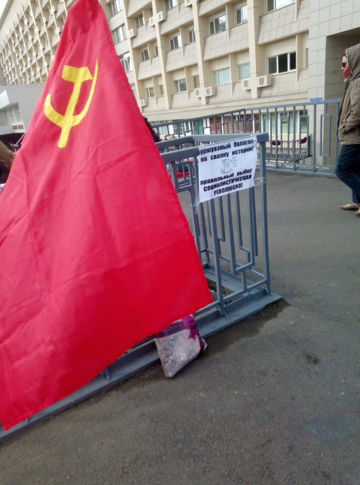 Активистка стояла на пешеходном мосту через улицу Вейнбаума с красным флагом и плакатом «Буржуазный балаган — на свалку истории! Правильный выбор — социалистическая революция!», когда к ней подошел полицейский. Правоохранитель заявил, что Фатьянова проводит одиночный пикет и грубо схватил ее за руку.
