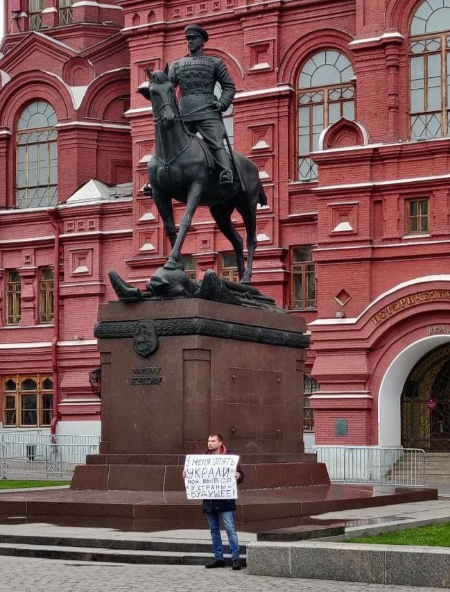 Абысов стоял с плакатом «У меня опять украли мой выбор, а у страны — будущее!». Пикетчика доставили в ОП «Китай-город», что ему вменяют — пока неизвестно.
