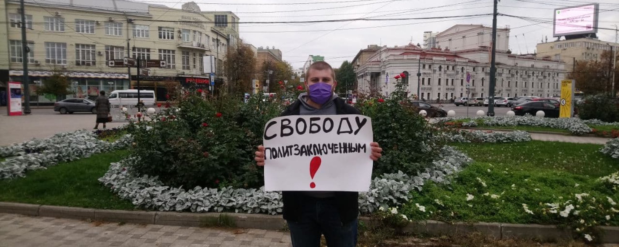 В Воронеже после одиночного пикета за свободу политзаключенных задержали активиста Никиту Лазарева. Об этом он сам сообщил ОВД-Инфо.