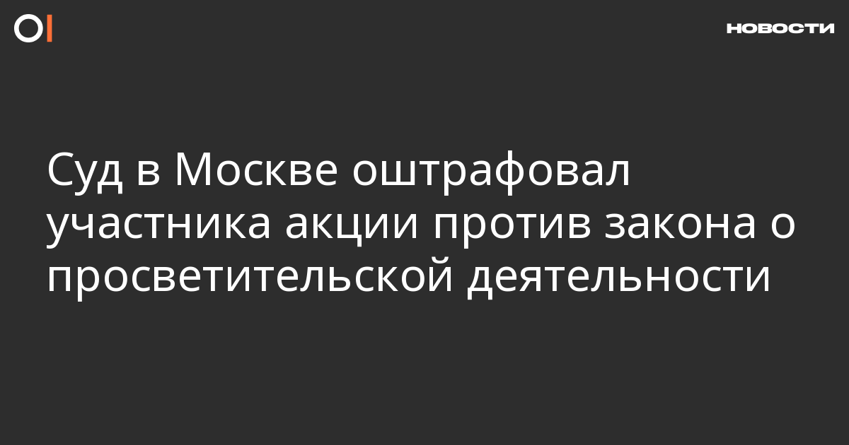 Никулинский районный суд Москвы оштрафовал активиста Павла Иванова на 10 тысяч рублей из-за акции против закона о просветительской деятельности. Об этом молодой человек сообщает в своем телеграм-канале.