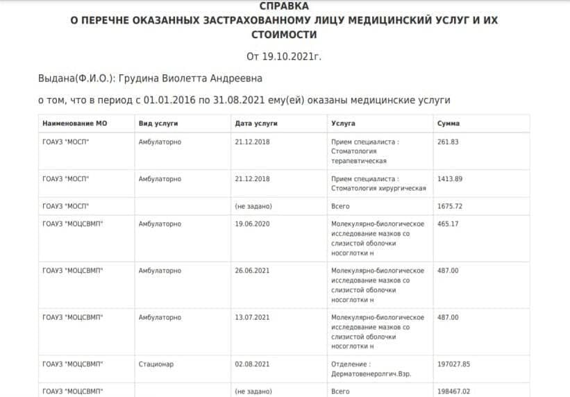 Грудина уточнила, что выставленный счет за услуги будет оплачен страховой по полису обязательного медицинского страхования.