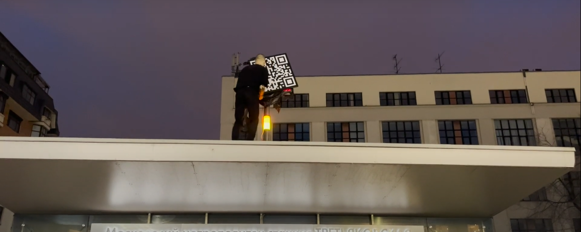 В Москве задержали акциониста Марлена Чтчяна, который произнес речь на крыше вестибюля станции метро «Третьяковская» и вывесил табличку с QR-кодом. Об этом он сам сообщил ОВД-Инфо.
