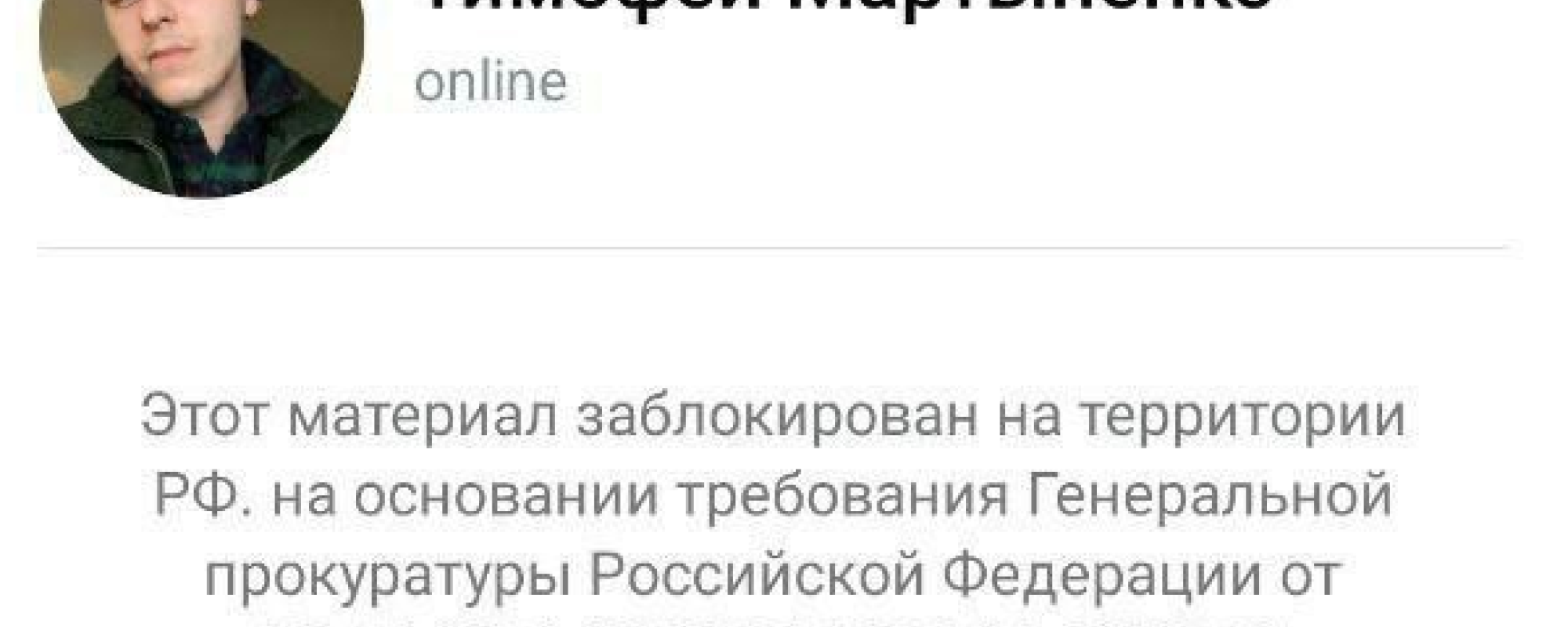Соцсеть «ВКонтакте» по требованию Генпрокуратуры заблокировала страницу сторонника Алексея Навального из Ростова-на-Дону Тимофея Мартыненко. Об этом он сам сообщил ОВД-Инфо.