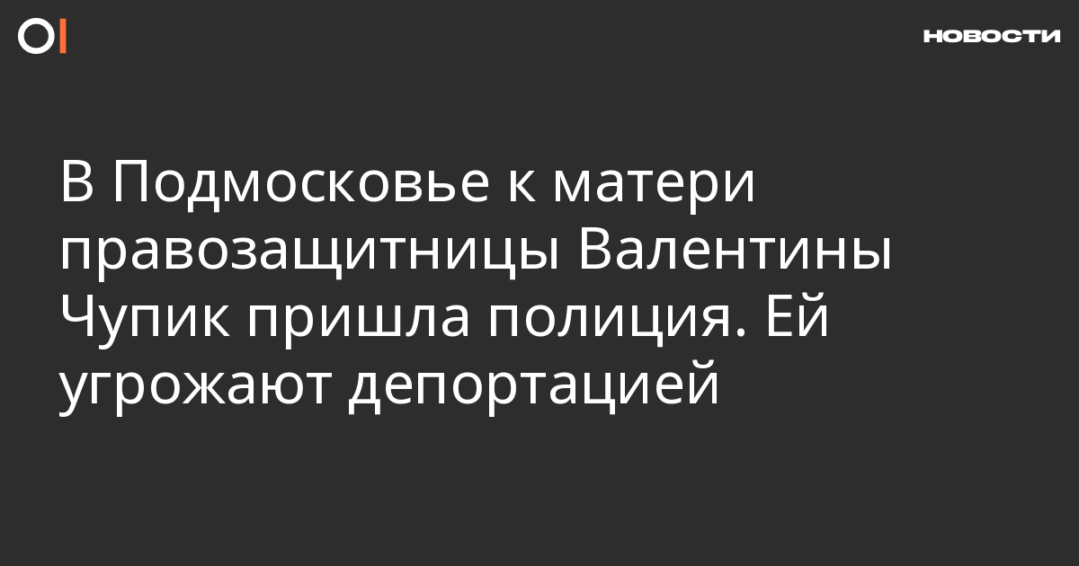 В Подмосковье к тяжелобольной 84-летней матери правозащитницы Валентины Чупик пришла полиция. Об этом ОВД-Инфо сообщила сама правозащитница.