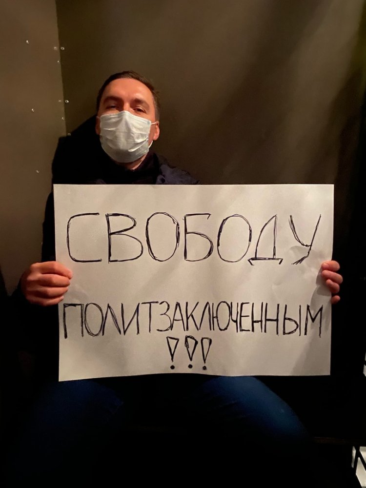 Активисты по очереди стояли с плакатом в поддержку Алексея Навального.