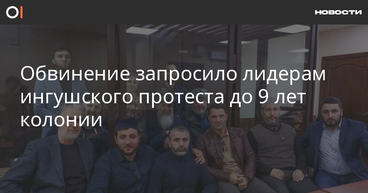 Обвинение 8 ноября на прениях в Ессенткуском городском суде запросило от семи с половиной до девяти лет колонии лидерам ингушского протеста. Об этом сообщает телеграм-канал Правозащитного центра «Мемориал».