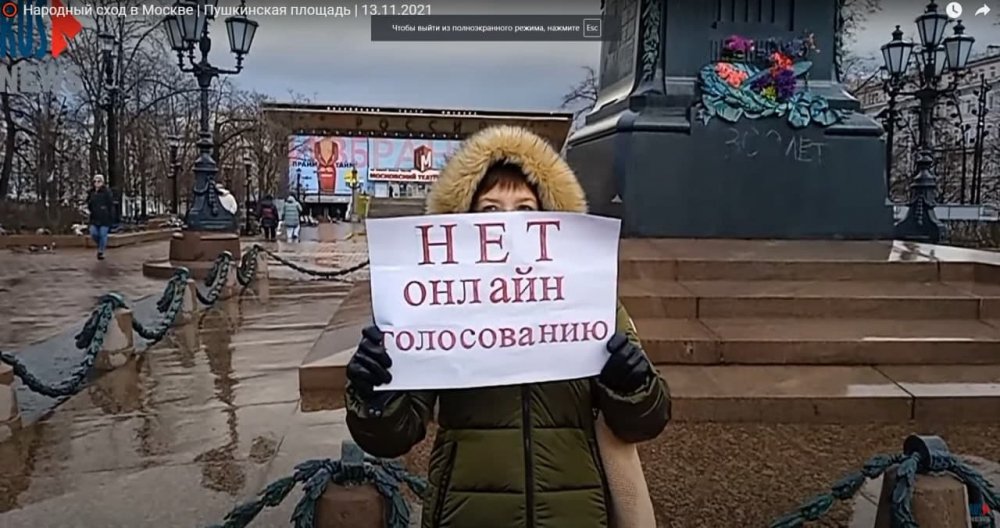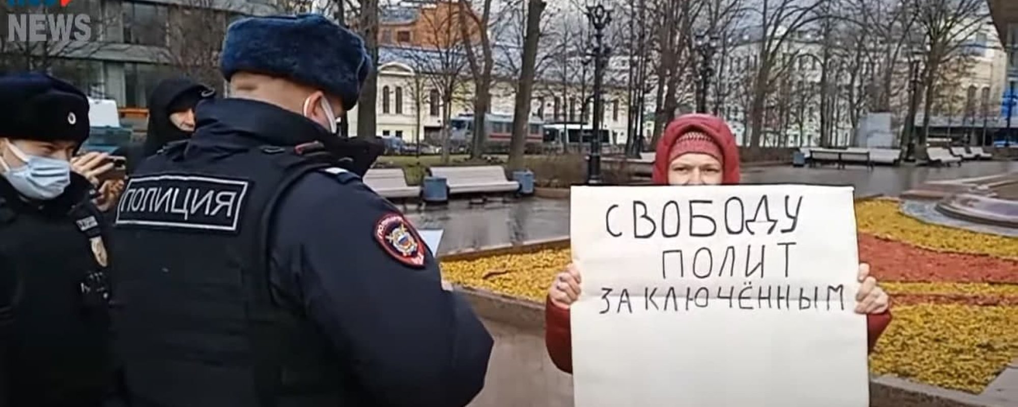 Одна из задержанных, Вера Лагуточкина, вышла на пикет против онлайн-голосования. Имя второго активиста, который стоял с плакатом за свободу политзаключенных, неизвестно.