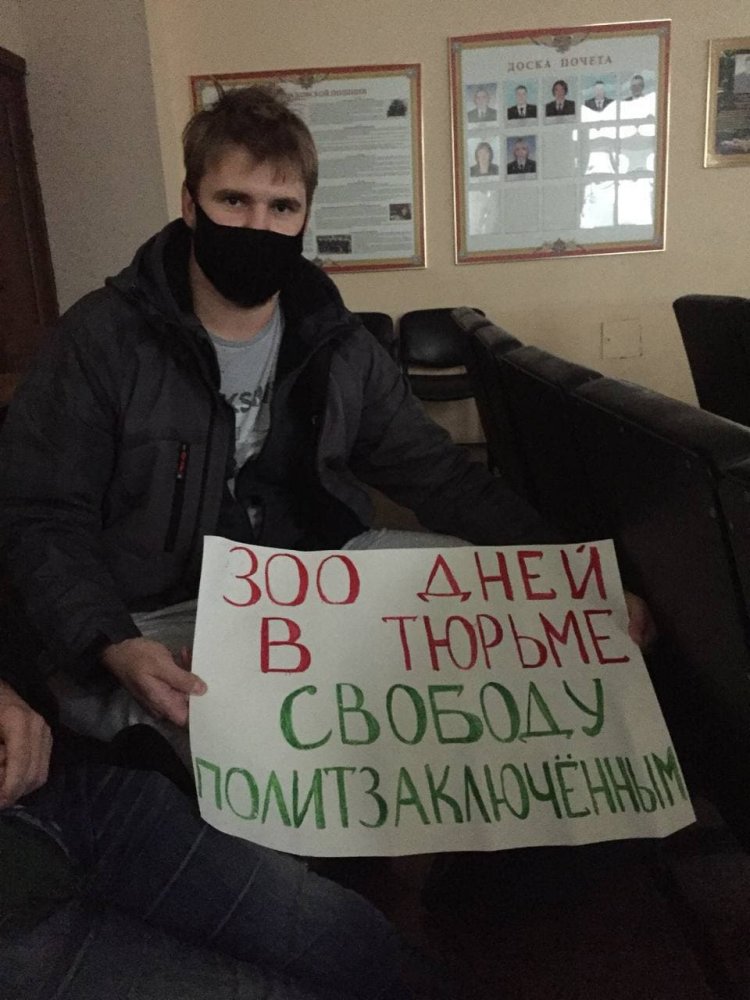Один из пикетчиков, Михаил Березкин, стоял с плакатом «300 дней уже в тюрьме. Свободу политзаключенным», активиста задержали через несколько секунд после начала акции. Второй задержанный, пожелавший не называть свое имя, также выступал за свободу политических заключенных.