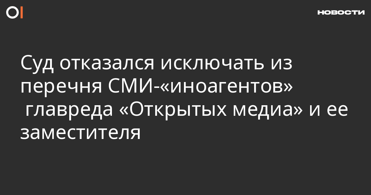 Московский городской суд отказал в административном иске главному редактору «Открытых медиа» Юлии Ярош и ее заместителю Максиму Гликину, просившим исключить их из перечня СМИ-«иностранных агентов». Об этом сообщает телеграм-канал «Правозащита».