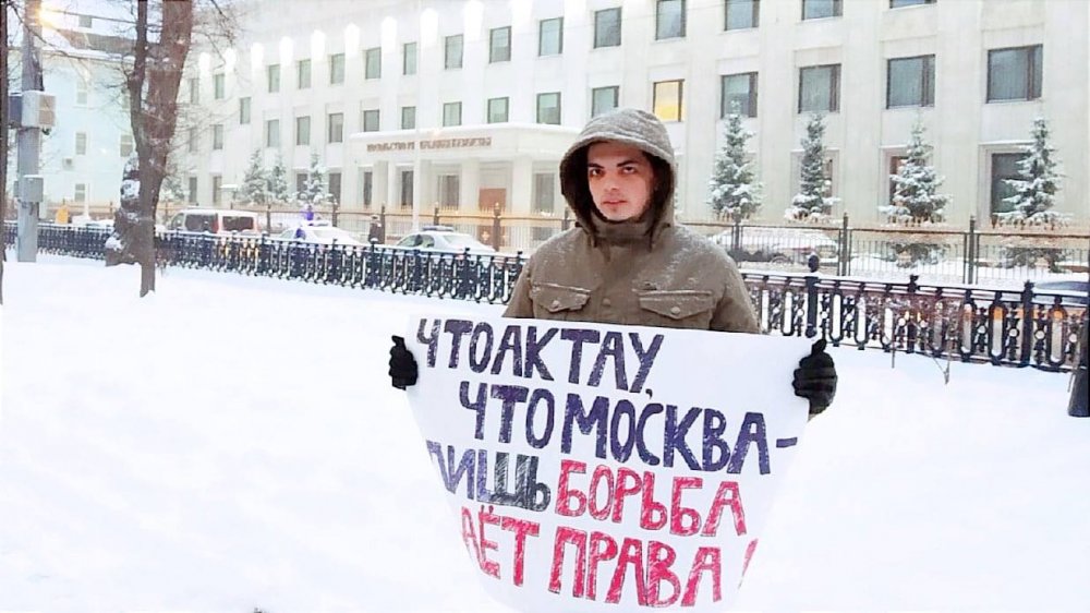 В Москве полицейские задержали активиста Антона Мальгаждарова из-за одиночного пикета у посольства Казахстана. Об этом ОВД-инфо сообщила девушка задержанного.